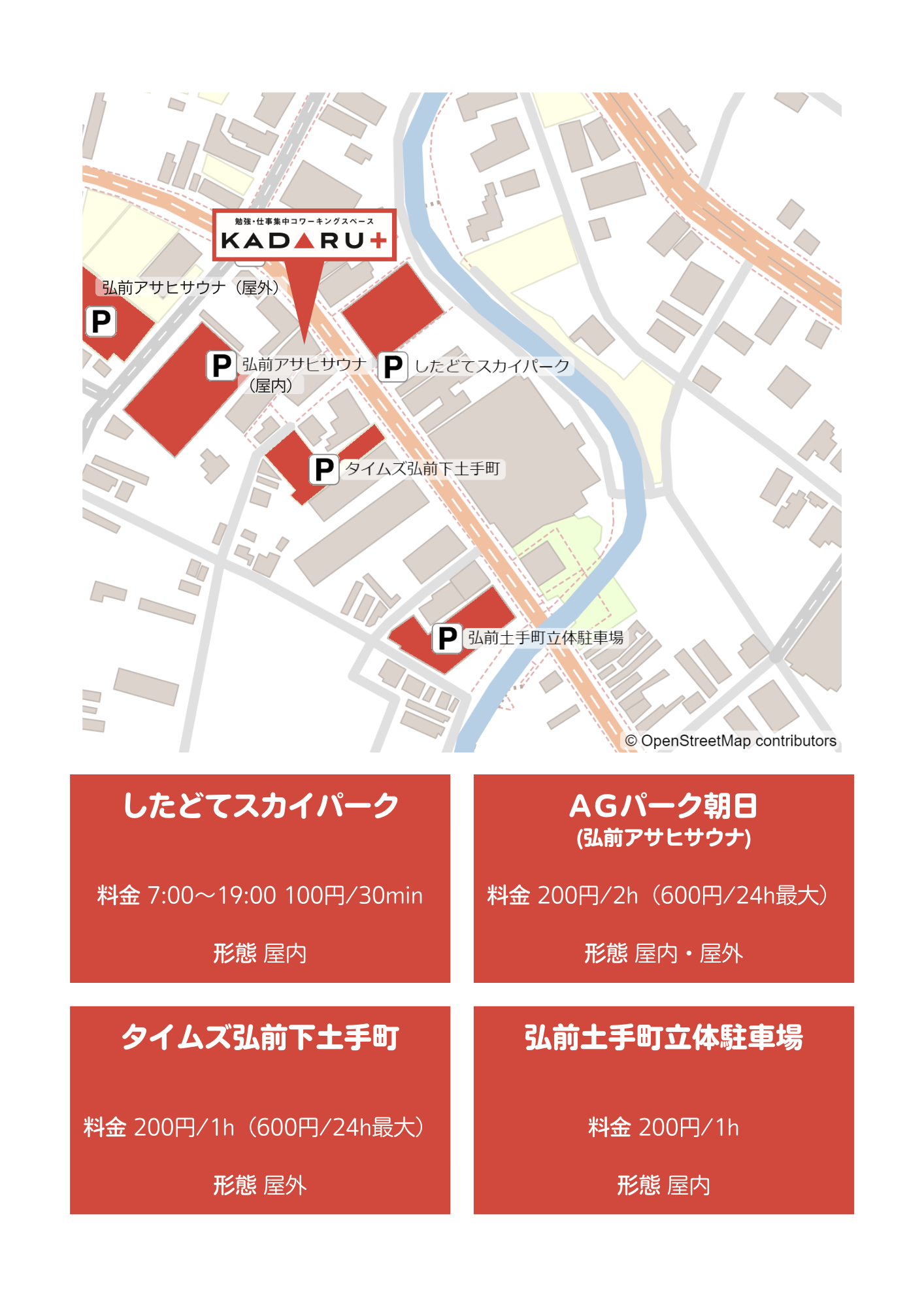 - 弘前市土手町に位置する当店は、観光拠点としての利用がおすすめ。